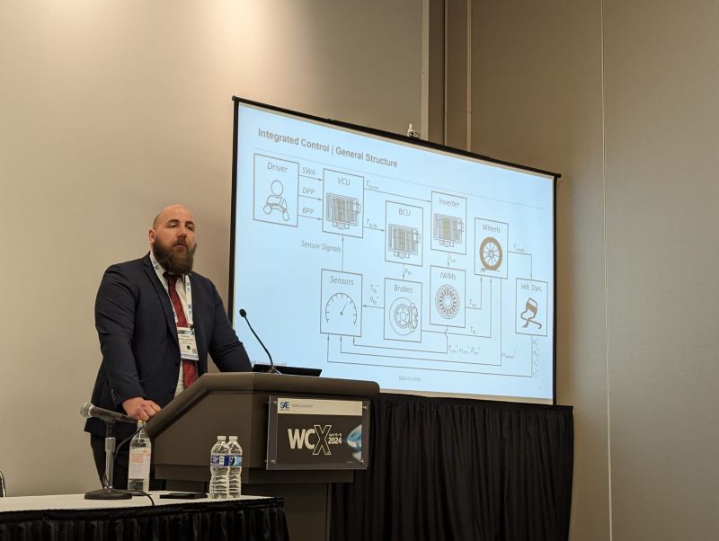 In my speech, I presented my recent research on “Integrated Chassis Control for Energy-Efficient Operation of a 2WD Battery-Electric Vehicle with In-Wheel Propulsion”, that was started with the EVC1000 Project and is currently investigated in the HighScape project. Both are funded by the European Commission and CINEA.