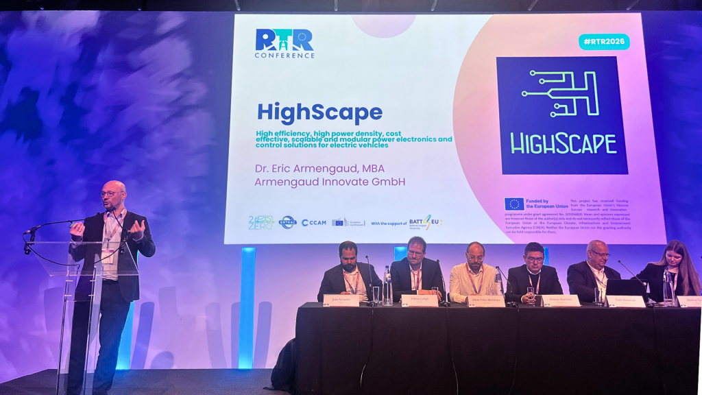 RTR2026 offered a vibrant and energizing setting for the HighScape team. As part of the session “Power electronics for electric vehicles,”the project highlighted why power electronics play such a pivotal role in shaping the entire EV ecosystem – on equal footing with electric motors themselves. Together with us, the 2ZERO projects HiPE, SCAPE, Powerdrive and RHODaS were presented.